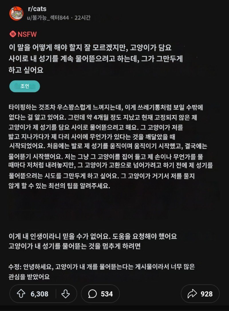- ㅇㅎ)고양이가 자꾸 제 고추를 물어요