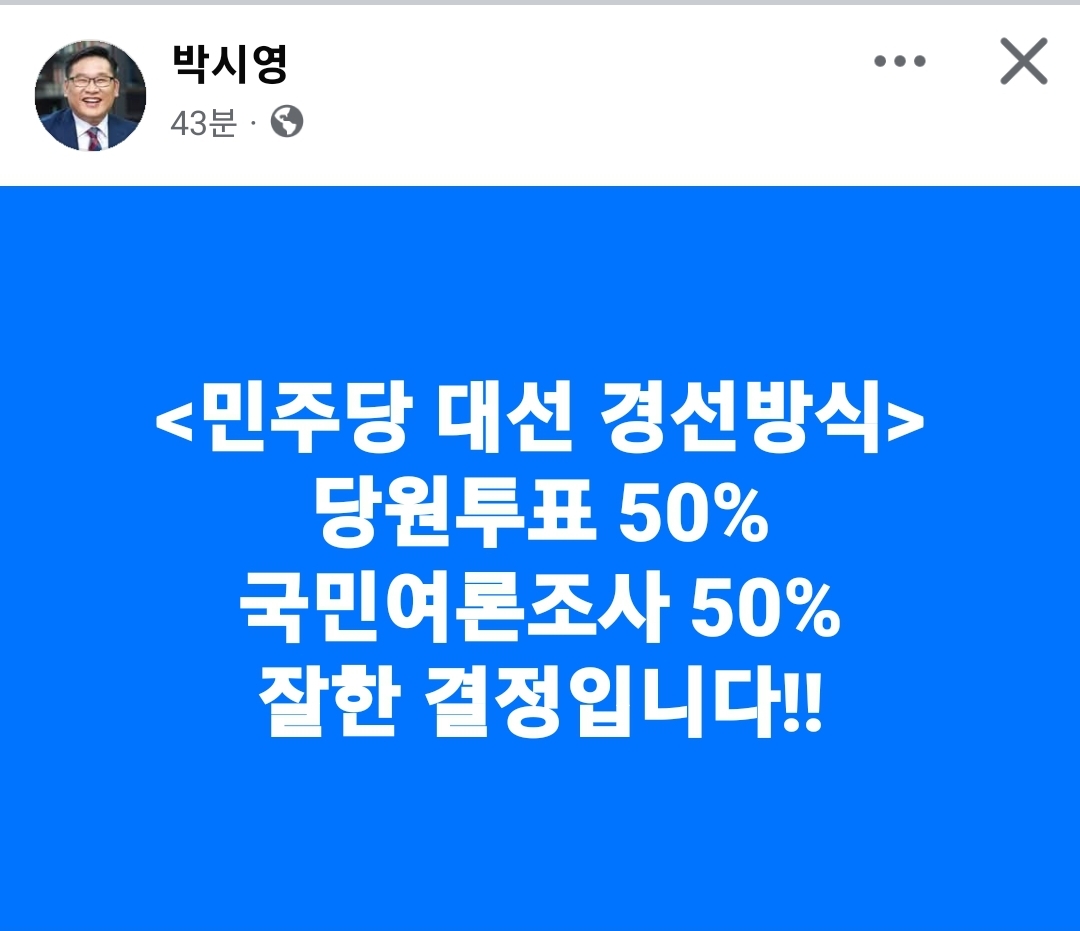 - 박시영 대표 - 당원투표 50%, 국민여론조사 50% 잘한 결정입니다!!