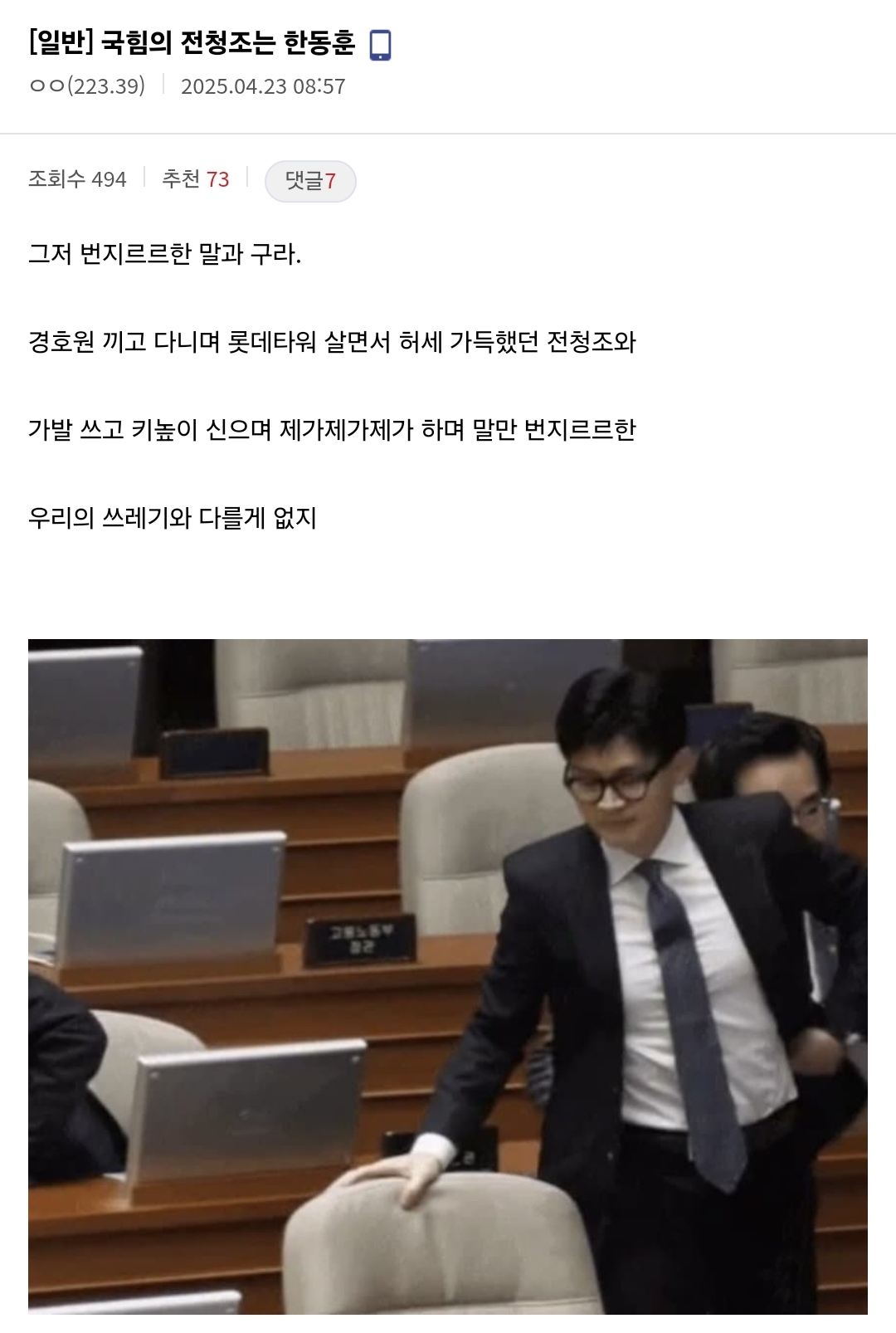 국짐갤러리에서는 한청조로 불리고 있음 ㅋㅋㅋ