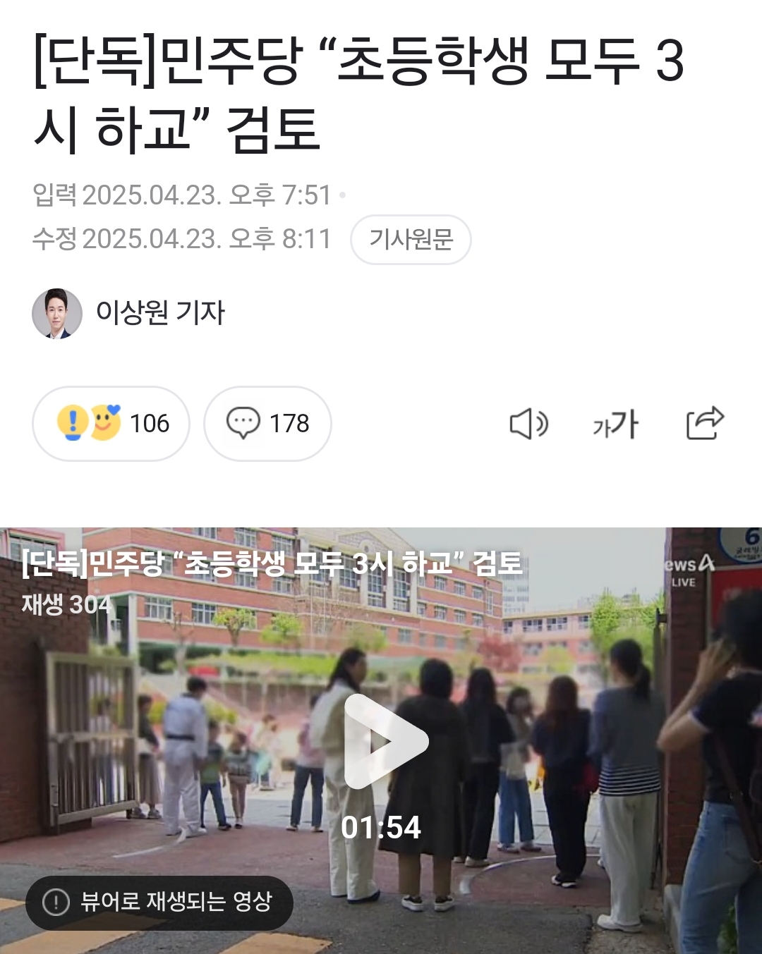 - 민주당 “초등학생 모두 3시 하교” 검토