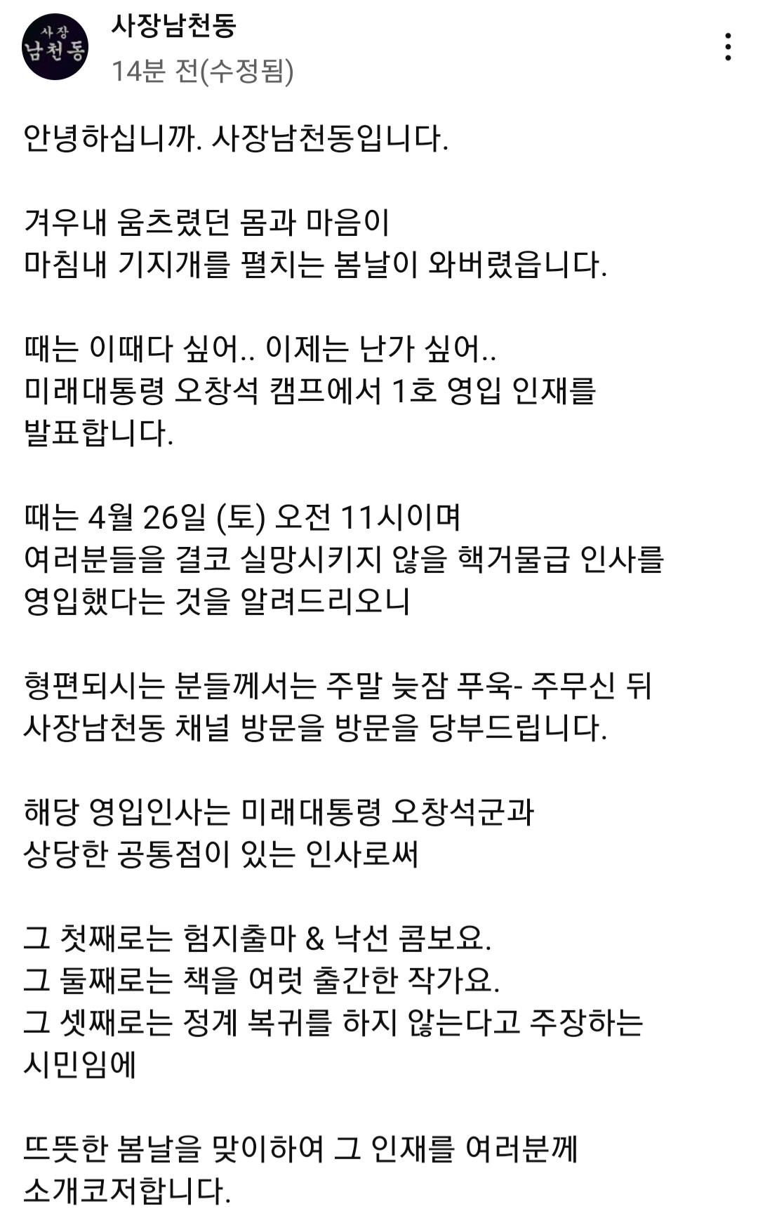 - 사장남천동, 1호 영입인재 설마 설마 ㄷㄷ