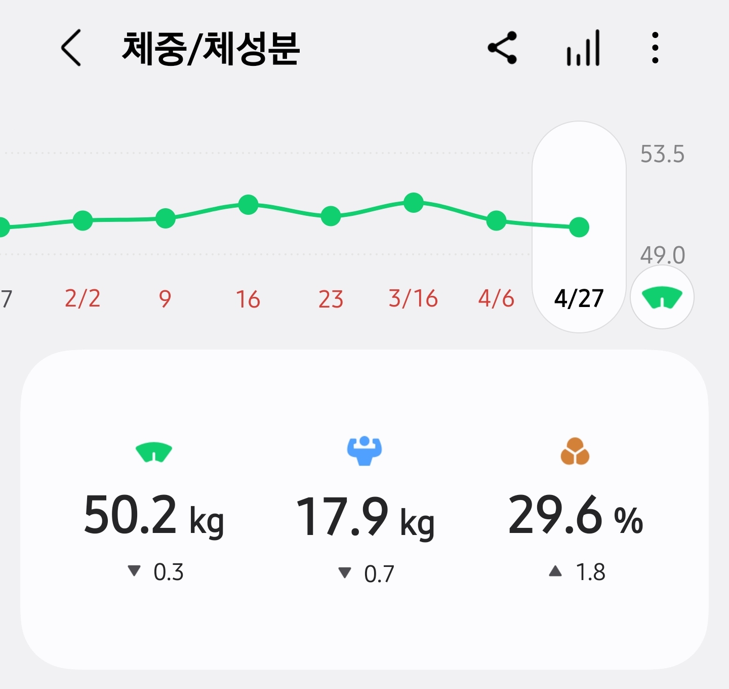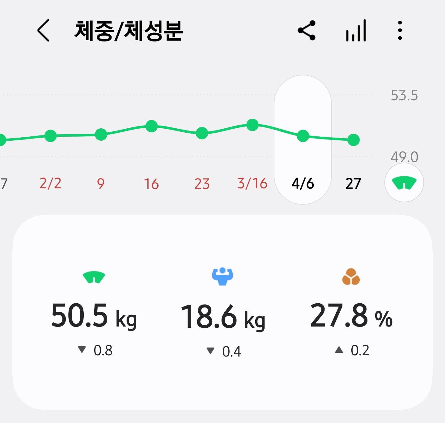 운동 안 하니까 골격근량 계속 내려가고