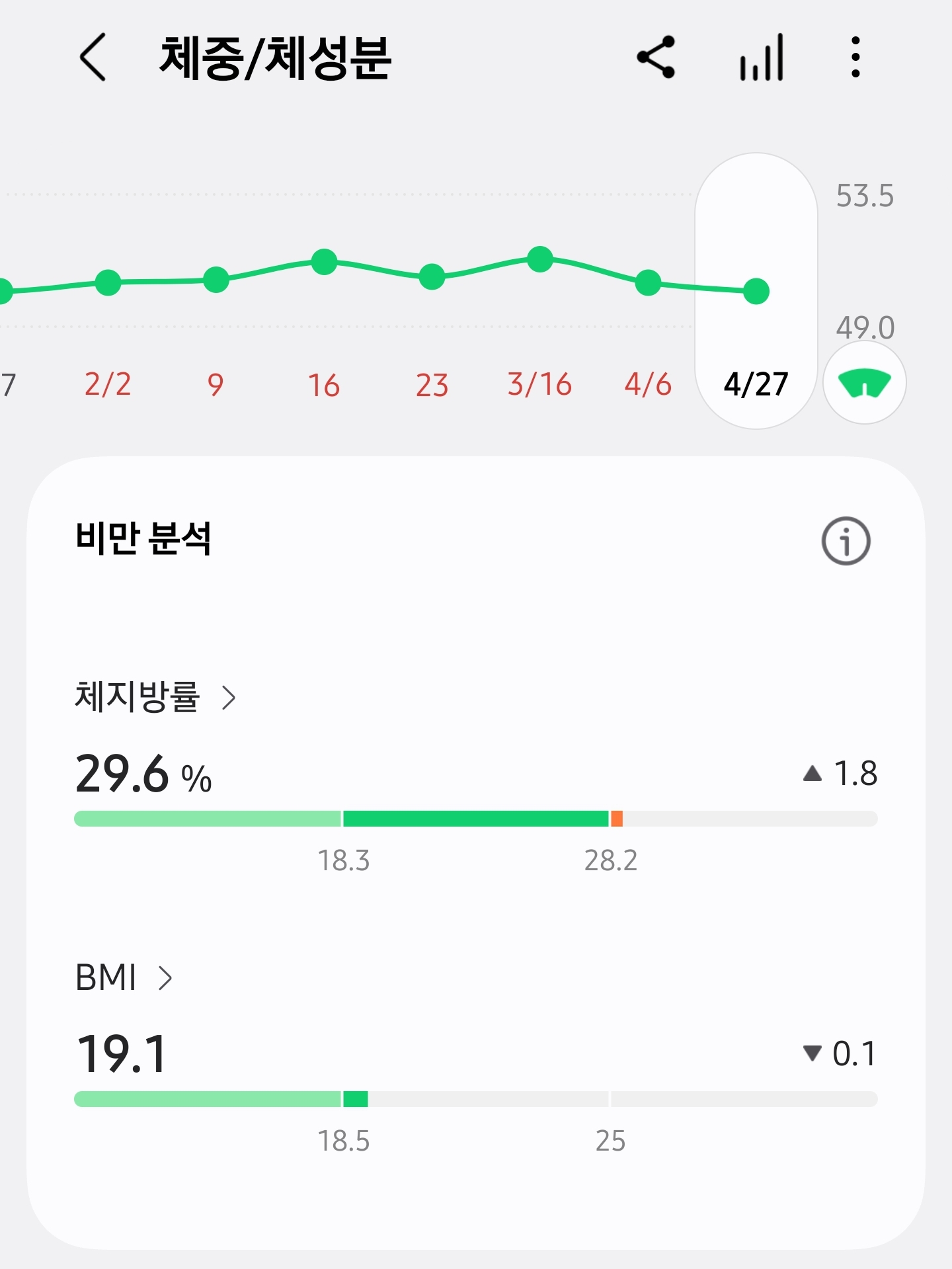 체지방률 그래프에서 경고색 안 보이게 하려고
