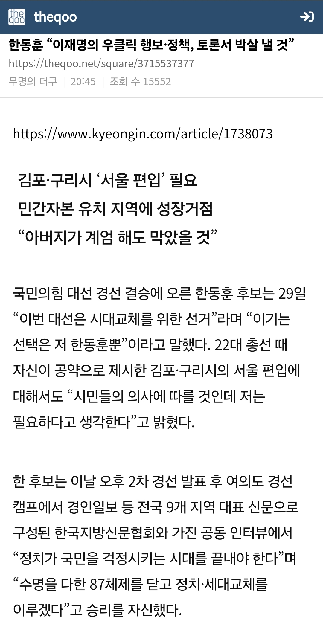 - 더쿠펌] 한동훈 이재명 우클릭 행보, 정책 토론회서 박살낼 것.