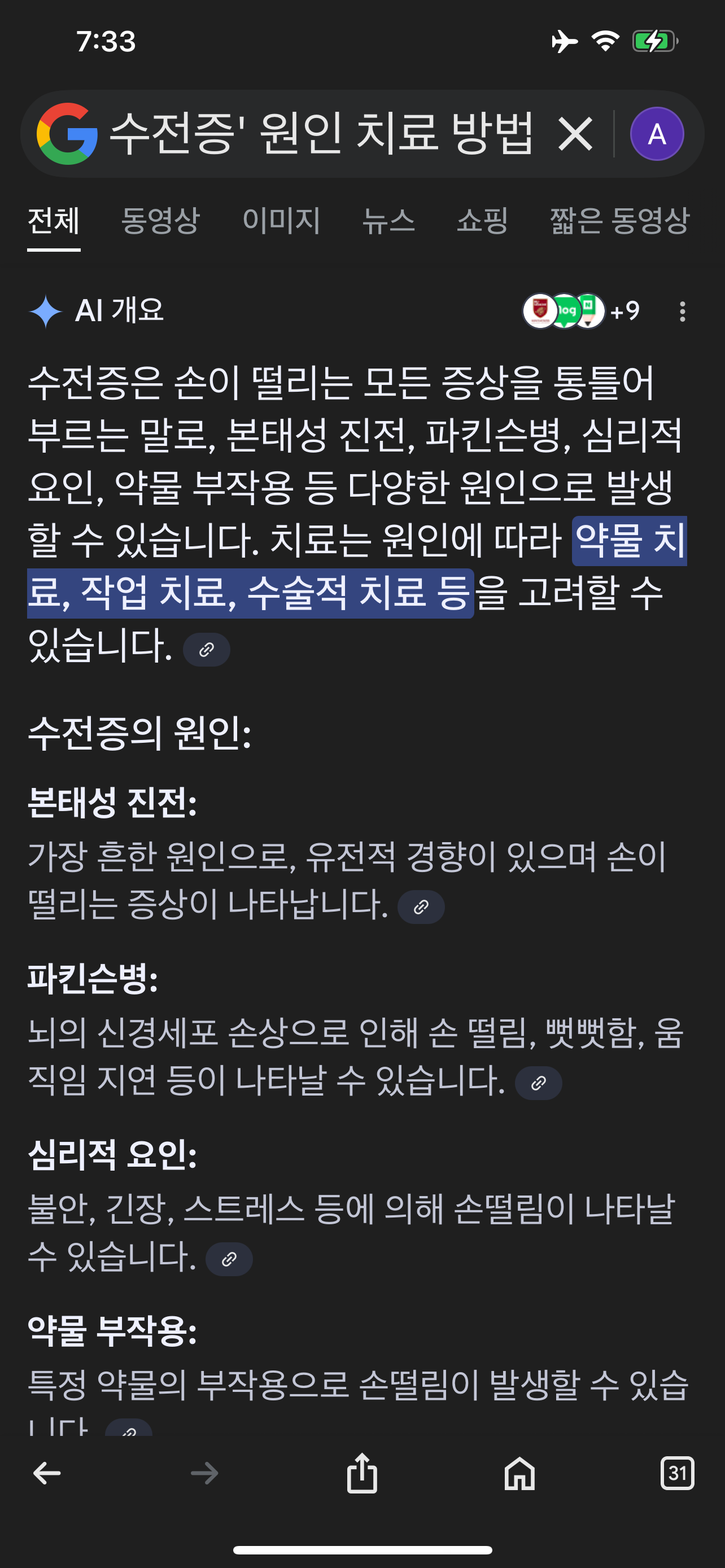 수전증 원인 -