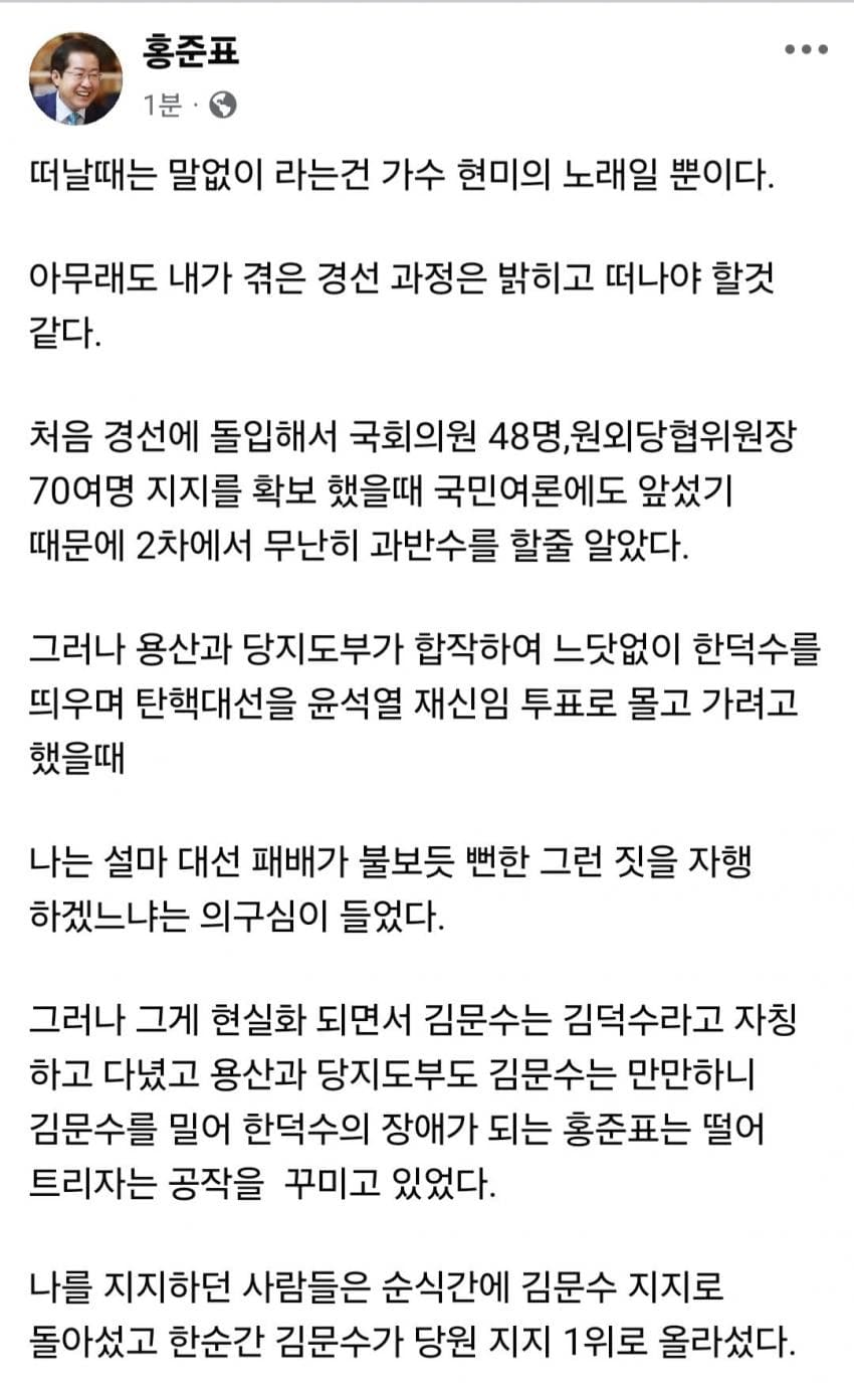 - [속보] 김문수 내일.한덕수 단독으로 만나기로 약속