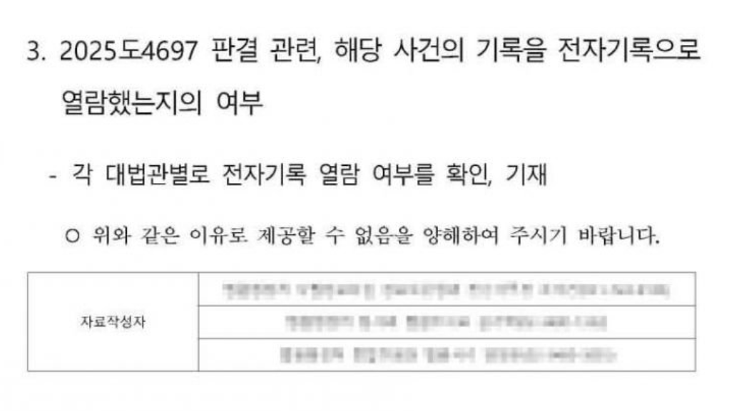 - 속보) 대법원 로그기록 공개할 수 없다. 양해 해달라