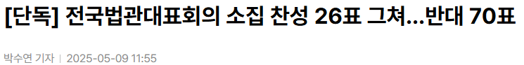 - [단독] 전국법관대표회의 소집 찬성 26표 그쳐…반대 70표