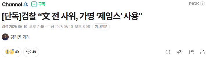 - [단독]검찰 “文 전 사위, 가명 ‘제임스’ 사용”