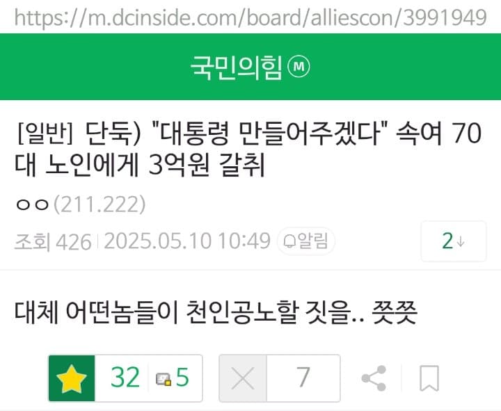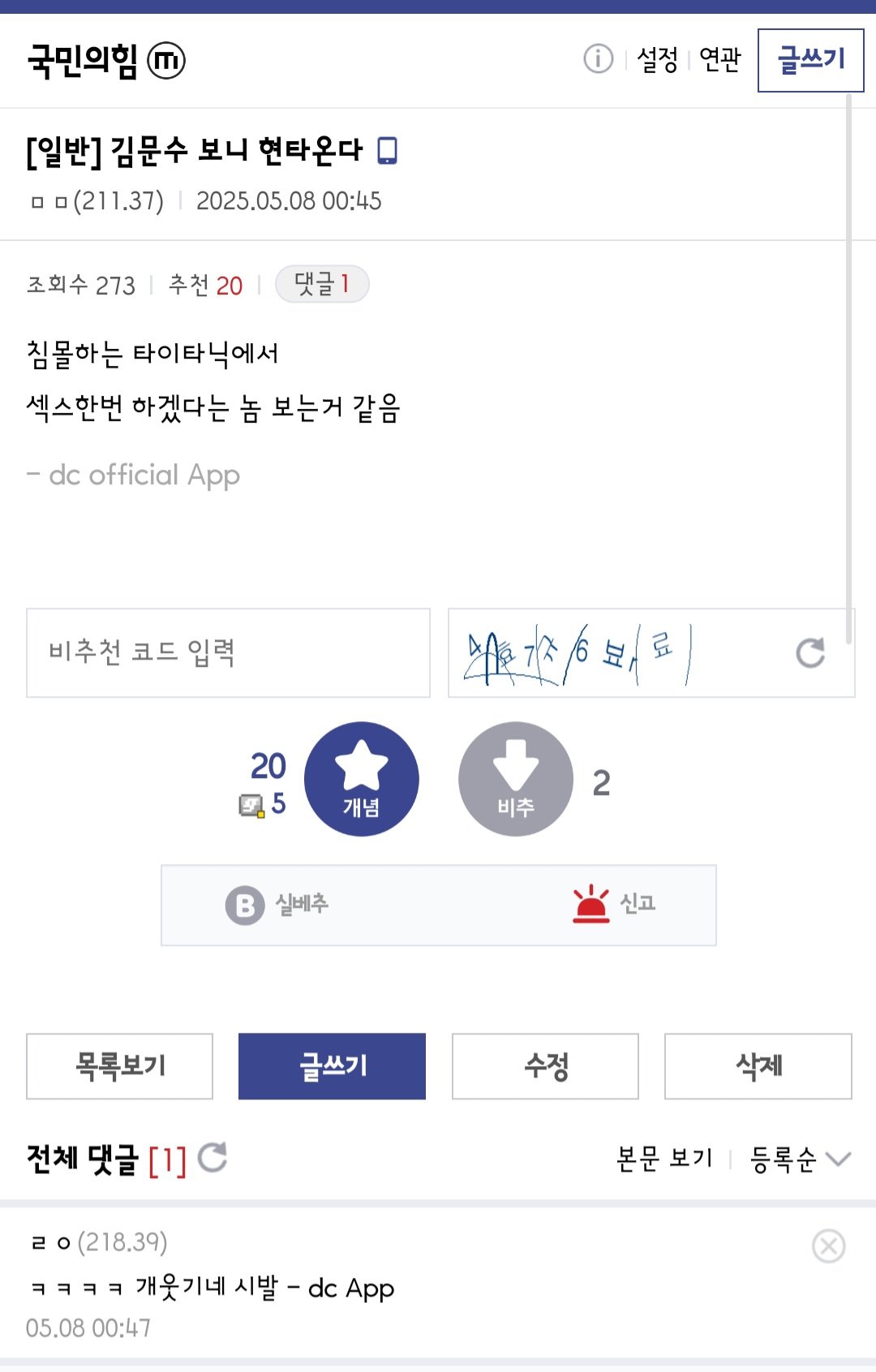 - 17금) 김문수 조롱하던 국민의힘 갤러리 ㄷㄷㄷ