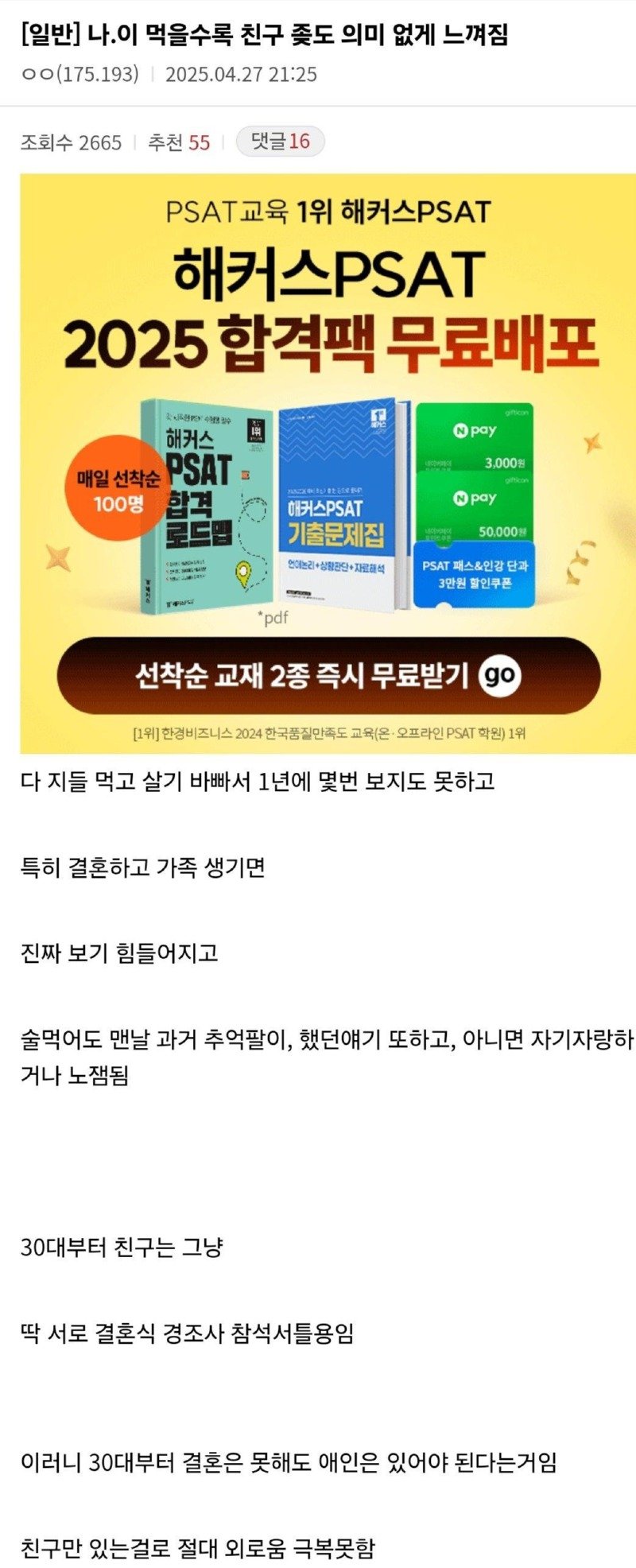 - 나이 먹을수록 친구 좆도 의미 없게 느껴짐