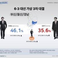 - 부·울·경.이재명 46.1% vs 김문수 35.6%