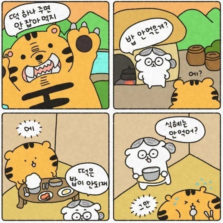 - 떡 하나 주면 안 잡아먹지!!
