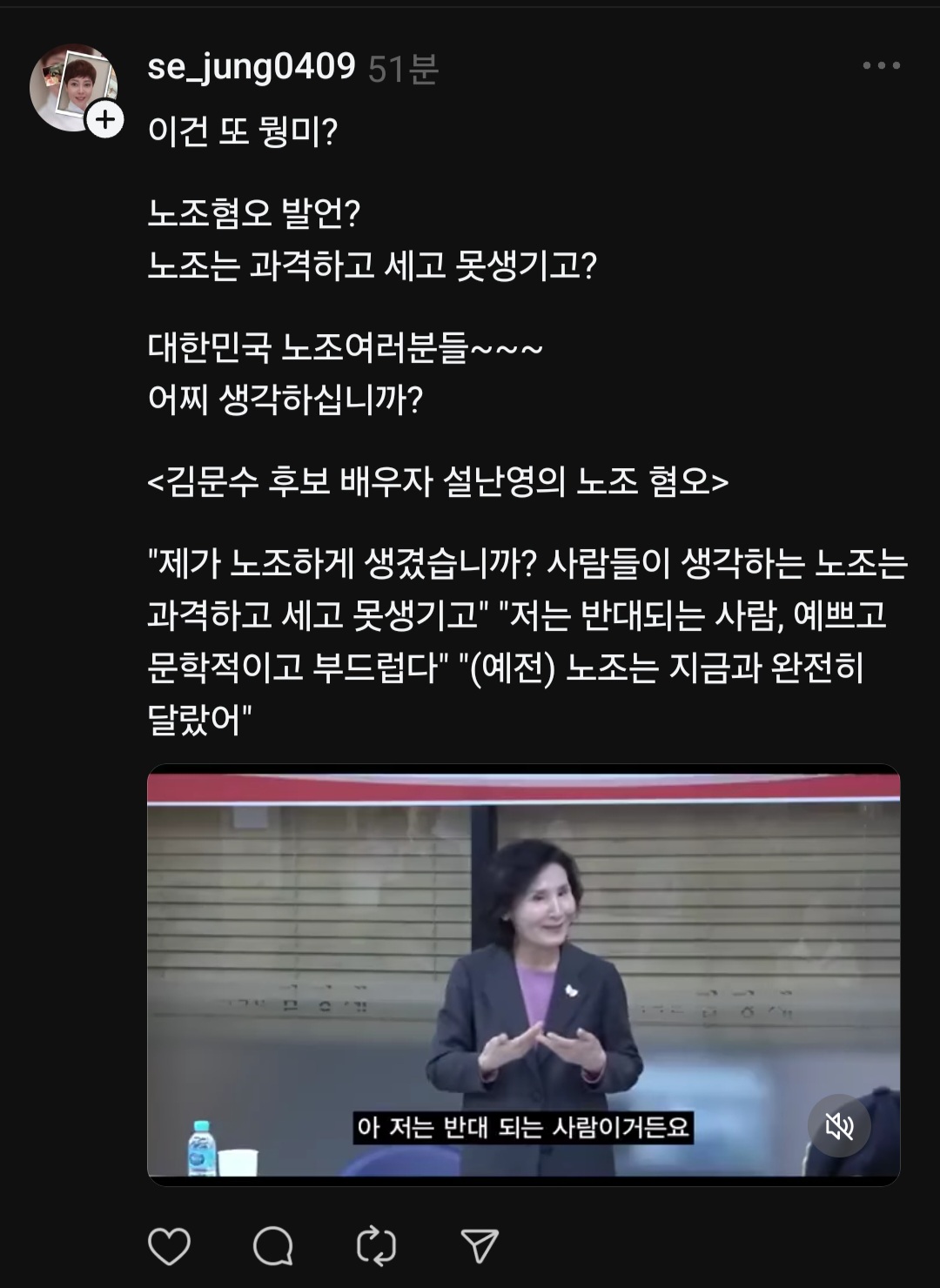 - 김문수 마누라 노조혐오