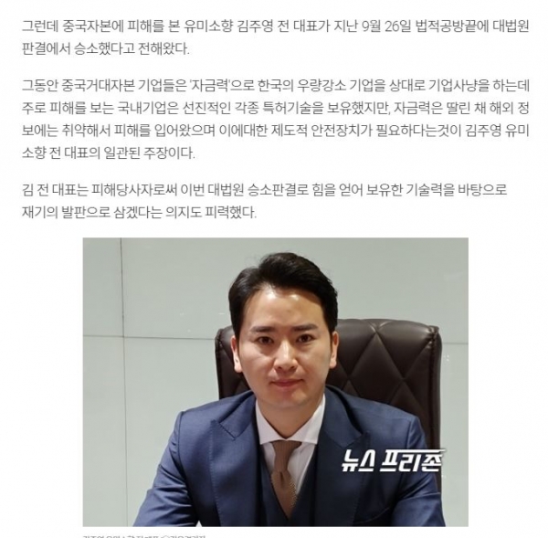 이 법정 공방은 3년 가량 진행된 사안이었다. 해당 중소기업 대표는 평생 일궈온 기술과 재산을 중국기업에게 다 뺏기고 거지가 될 뻔했다.