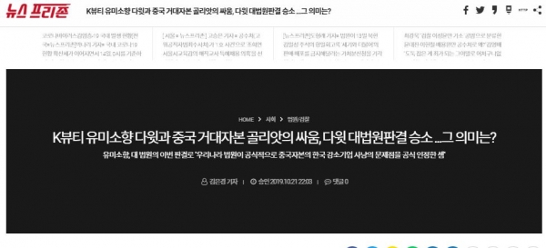 K뷰티 유미소향 다윗과 중국 거대자본 골리앗의 싸움, 다윗 대법원판결 승소 ...그 의미는? - 뉴스프리존 (newsfreezone.co.kr)