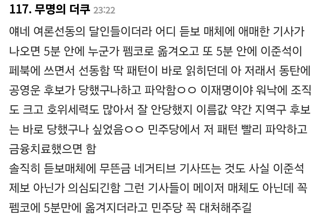 - 이준석 여론 선동팀 많은 사람들이 눈치채기 시작함