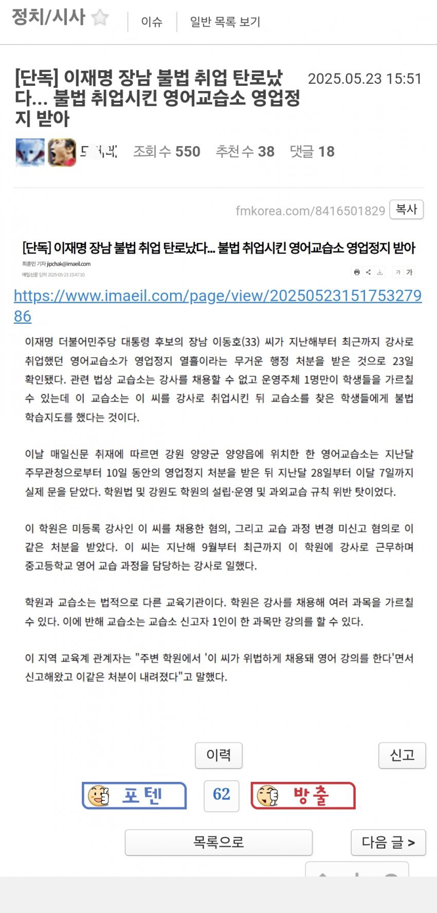 ●HMM 가짜뉴스도 듣보잡신문 기레기가 글 씀>>>>펨코 저놈이 기사 올라오고 3분만에 핫게 감>>>>이준석이 3분만에 퍼 가서 페북에 글 씀