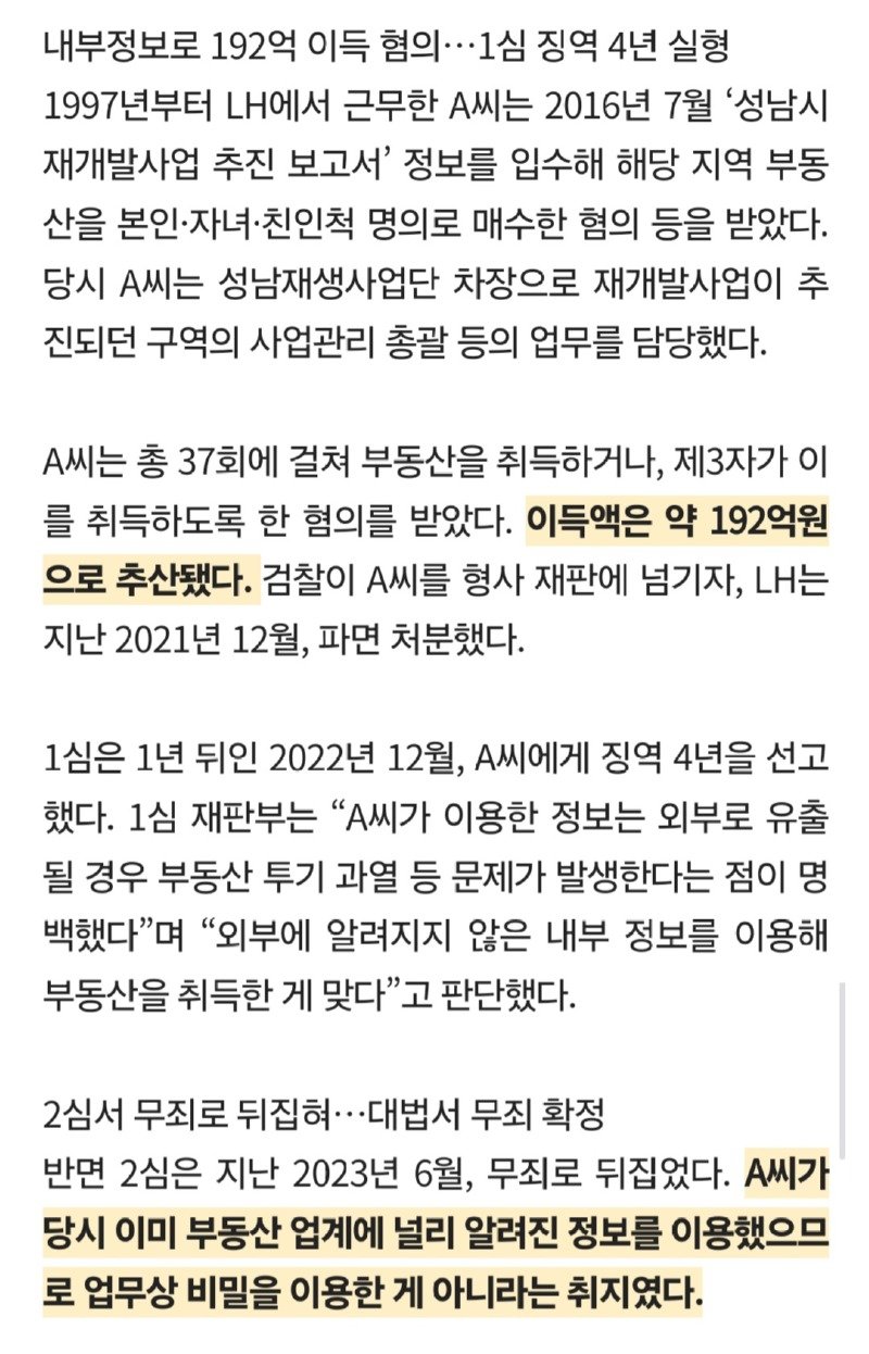내부정보 이용했다는 확실한 증거가 없다고 무죄라고함.