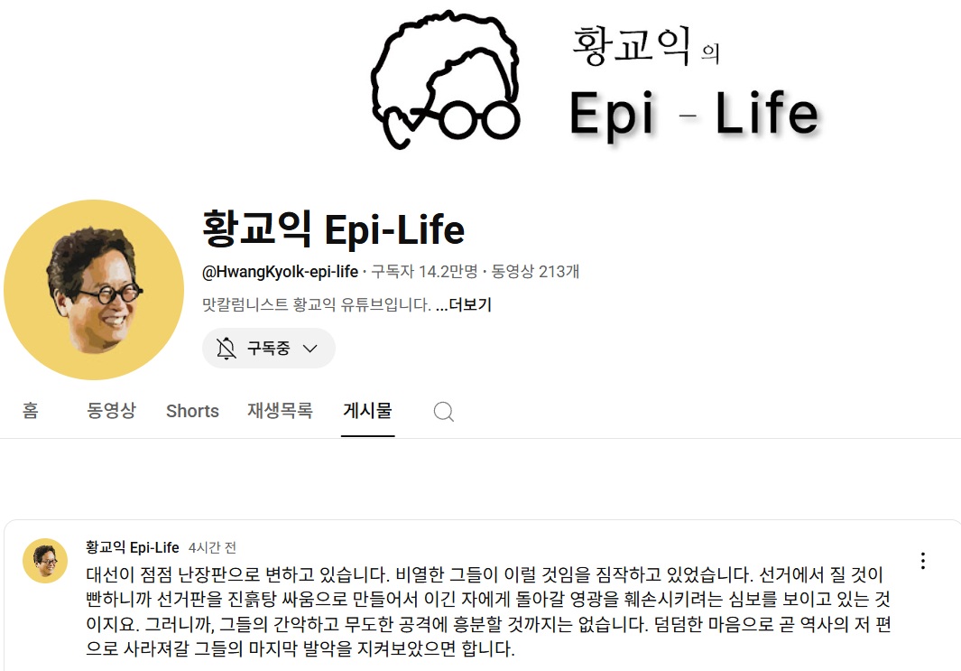 - 황교익님 입장문