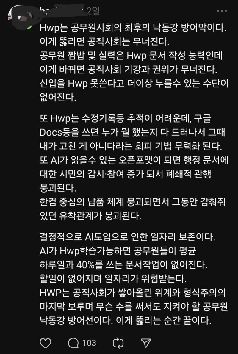 - hwp 공무원 사회의 최후의 방어막이다.