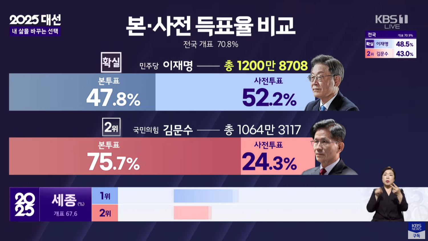 - 이재명 당선인 본투표 : 사전투표 = 47.8 : 52.2 ㄷㄷㄷ