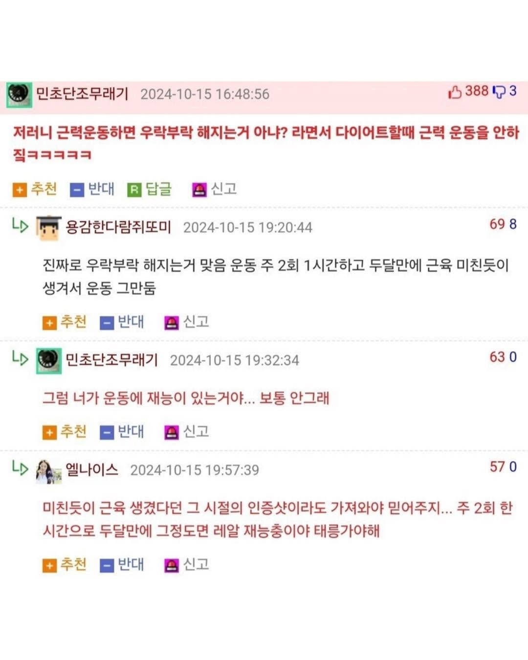 - 근육 인증했다가 비웃음만 들은 웃대인