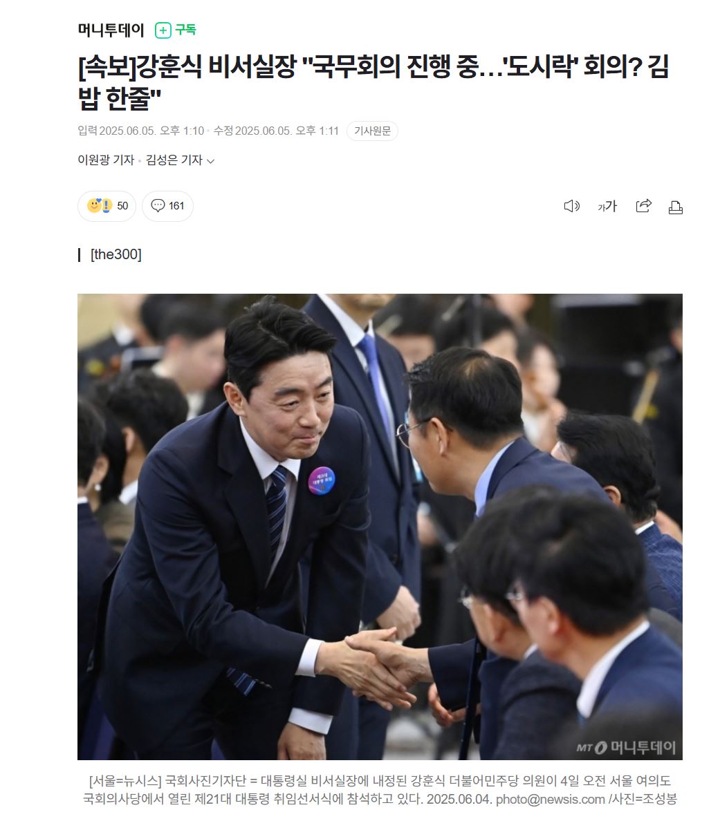 - [속보]강훈식 국무회의 진행 중…도시락 회의? 김밥 한줄