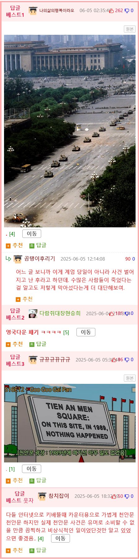 오늘(6월4일) 이 천안문 사건으로부터 36년 지난 날