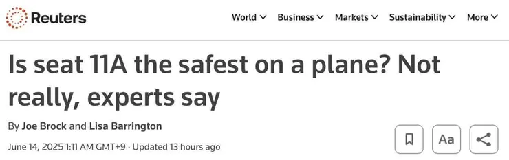 - [로이터] 인도 비행기추락참사. 11A가 정말 안전한 좌석입니까? 정말로?
