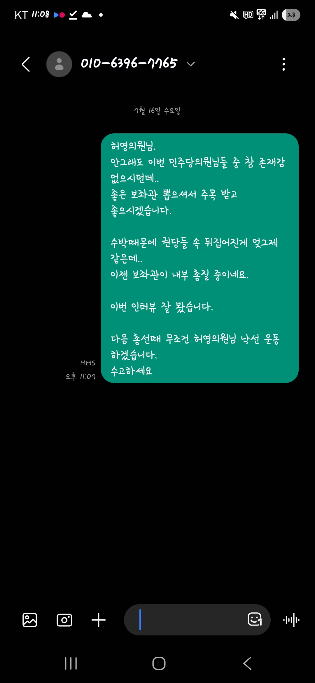 - 허영의원에게 문자 보냄.
