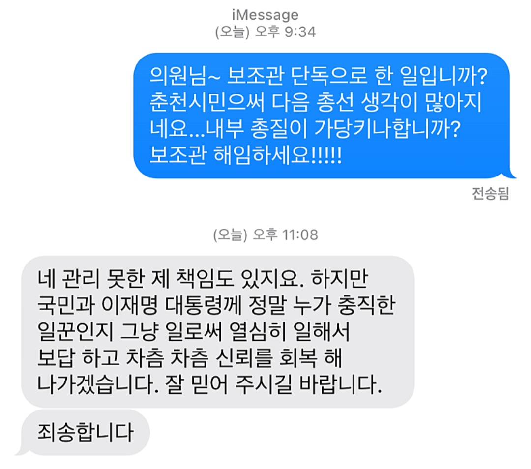 - 보좌관이 공개한 강선우 의원 카톡