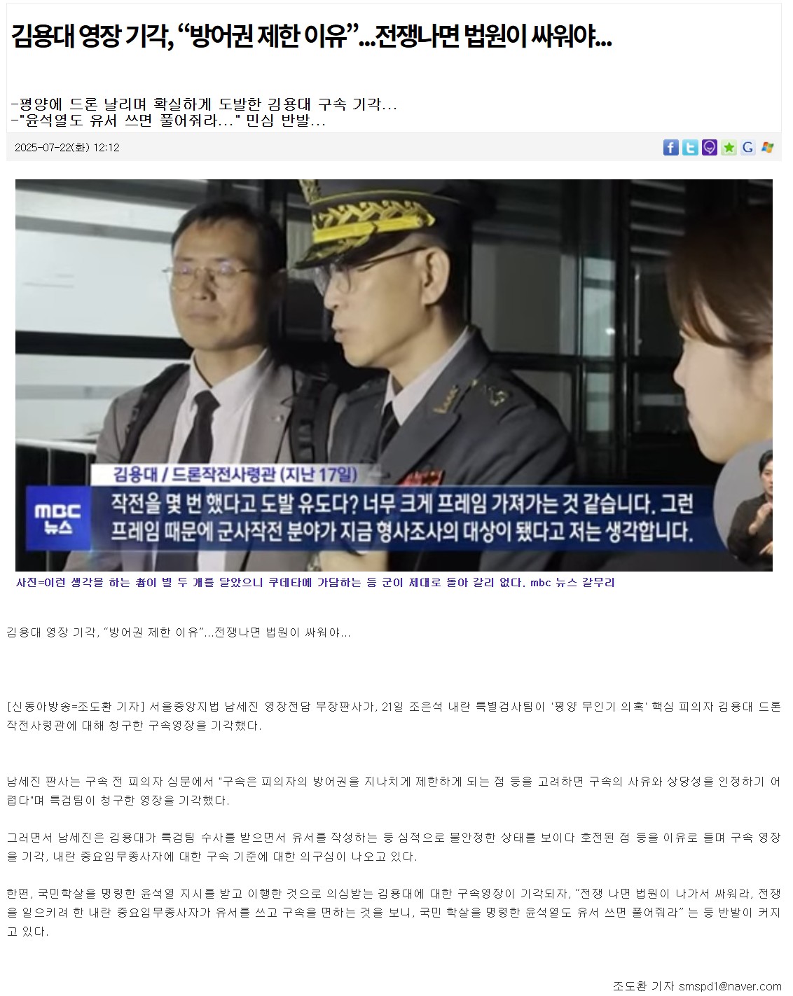 - 김용대 영장 기각, “방어권 제한 이유”...전쟁나면 법원이 싸워야...