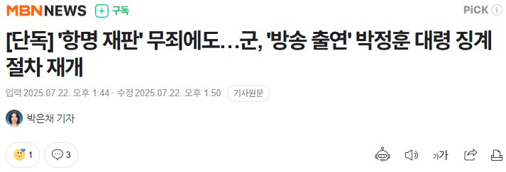 군은 박 대령의 항명 재판 결과와 징계 절차는 별건이라는 입장을 유지하고 있습니다.