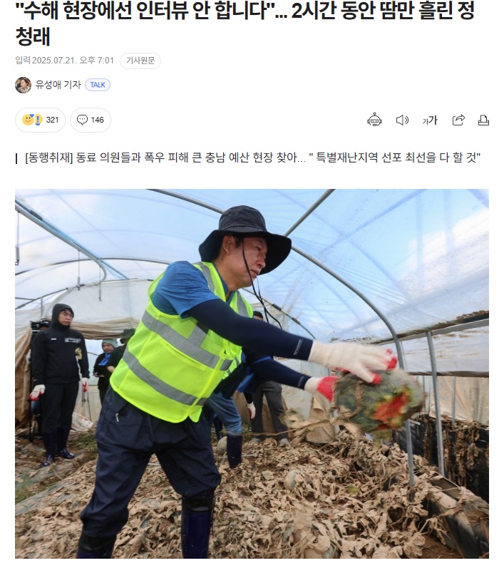 - 정청래 수해 현장에선 인터뷰 안 합니다