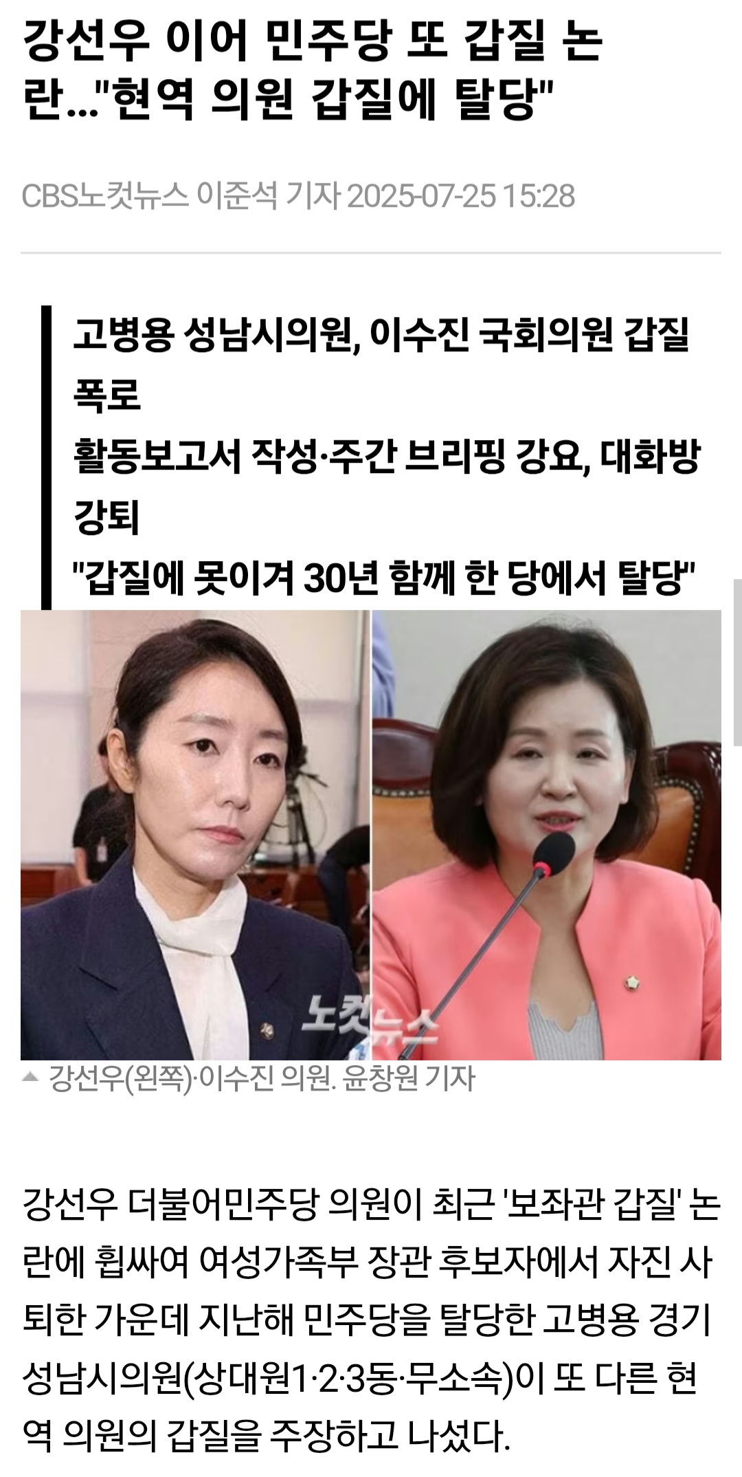 - [기사] 강선우에 이어 민주당 또 갑질 논란 . jpg