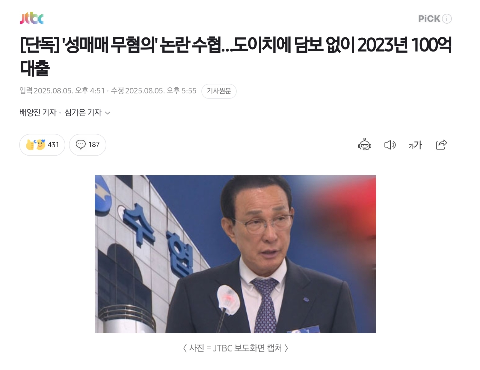 ●왜 대출해줬나 했더니 ㅋㅋㅋ 수협 회장이 당선되기 위해서 투표권이 있는 조합원들에게 성상납을 함 ㅋㅋㅋㅋㅋㅋ