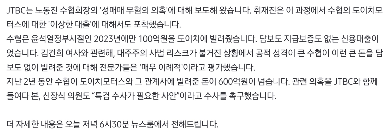 ●무협의 해줬더니 도이치 관련 회사에 수협이 600억 넘게 대출(아무 담보 없이)