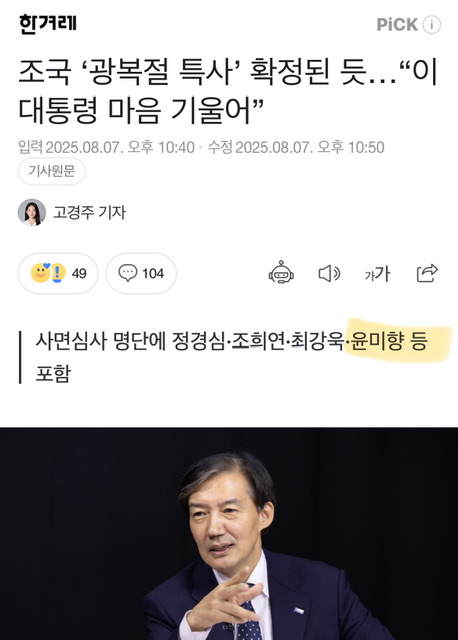 - [MBC단독] 조국대표, 광복절 특사 포함!!!!!!