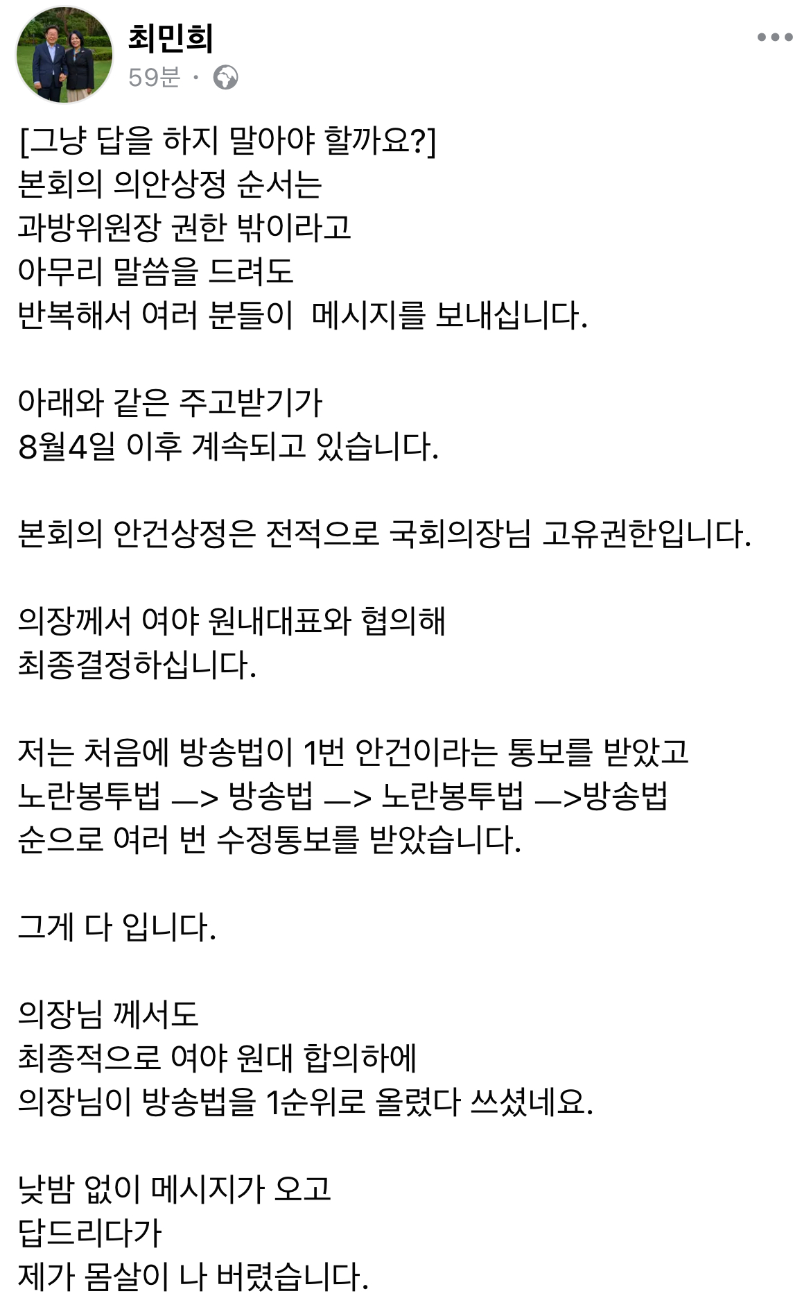 - 최민희의원 [그냥 답을 하지 말아야 할까요?]