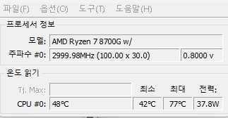 지금은 아무리 뭔짓을 해도 60도 이상 안나옵니다. 부팅하고 바탕화면 나올때 70도정도 찍고 이후 40도 유지 ㄷㄷㄷ