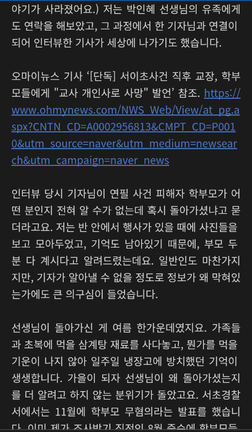 - 서이초 관련 이런글이 있네요(긴글주의)