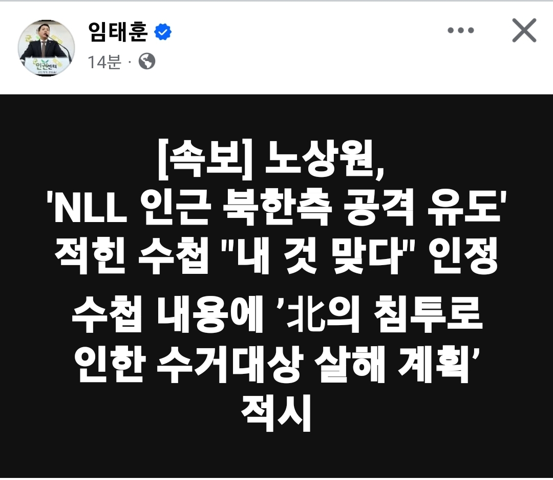 - 임태훈 소장 - [속보] 노상원, NLL 인근 북한측 공격 유도 적힌 수첩 내 것 맞다 인정