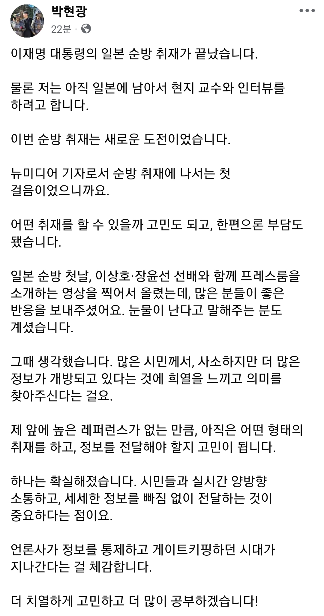 - 박현광 기자 - 이재명 대통령의 일본 순방 취재가 끝났습니다.