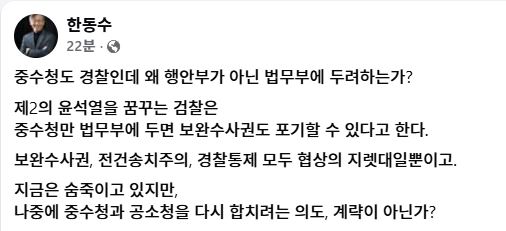 - 한동수 더불어민주당 윤리심판원장 페이스북