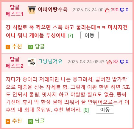 자다가 기지개펴면 종아리에 백퍼오는데 눈물남