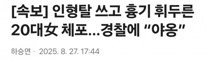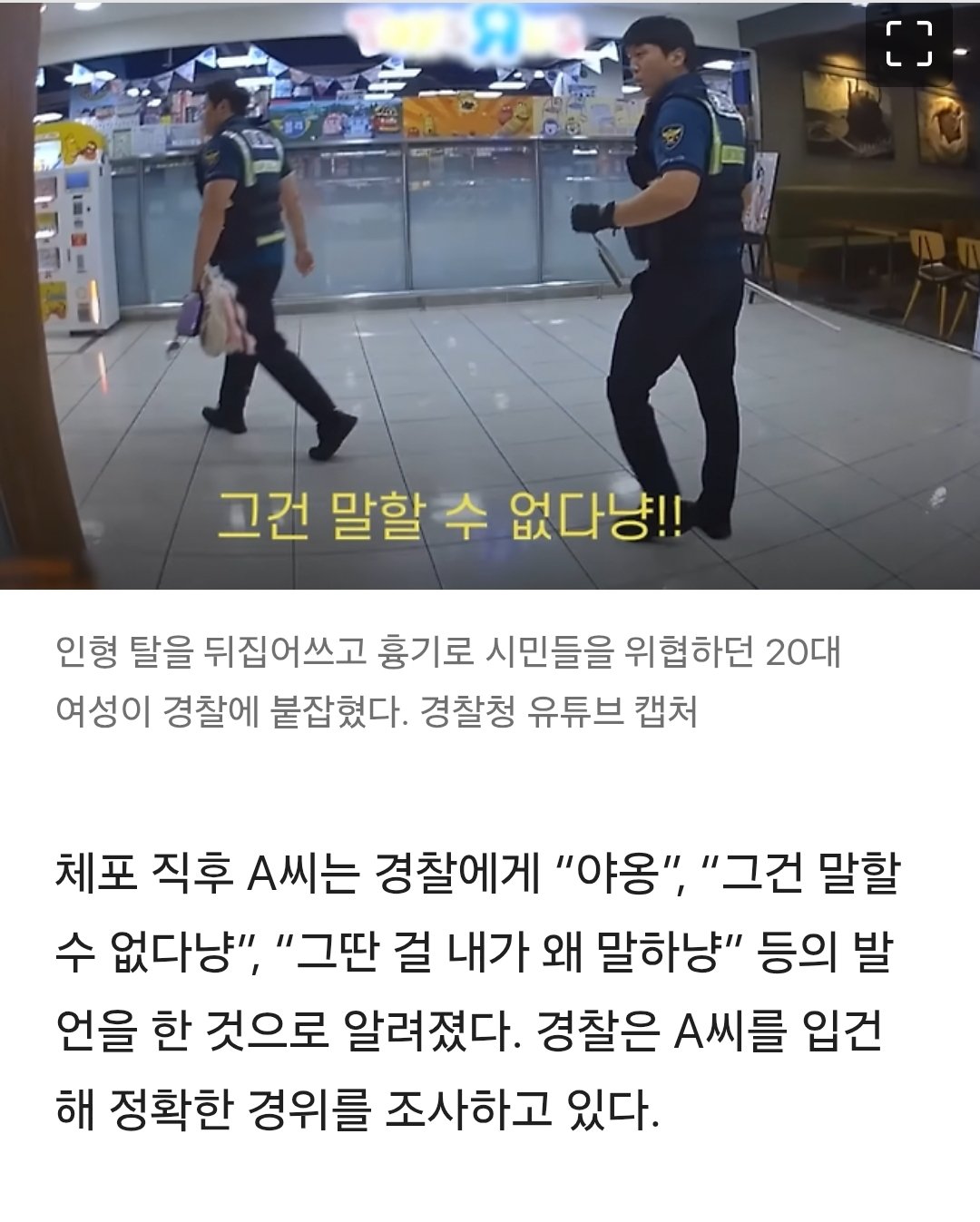 - 인형탈 쓰고 흉기 휘두른 20대女 체포