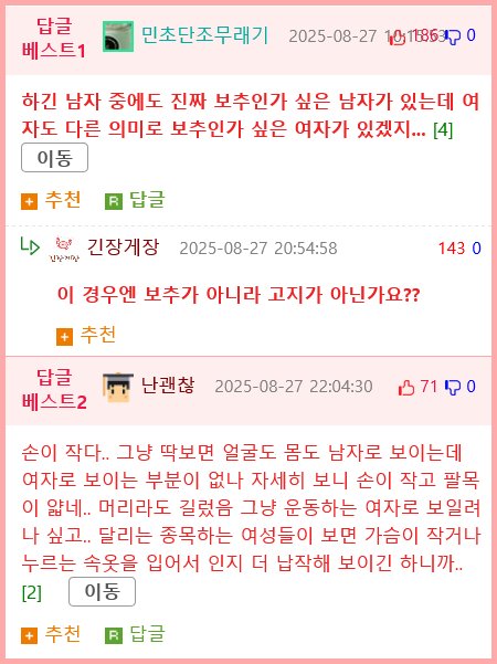 남자라는 악플 때문에 은퇴했다가