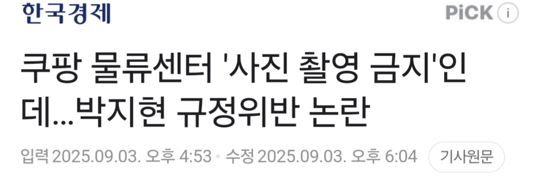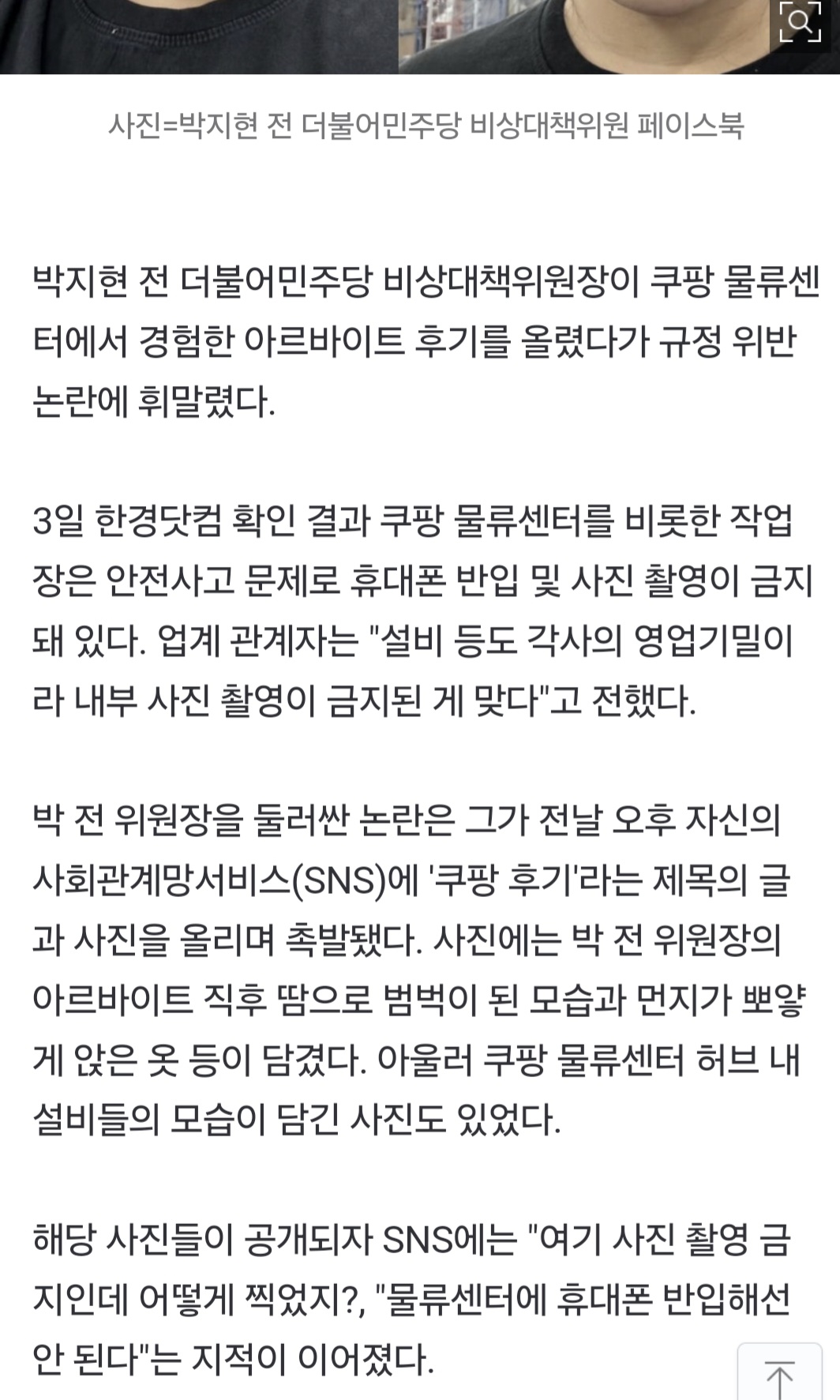 - 쿠팡 물류센터 사진 촬영 금지인데…박지현 규정위반 논란