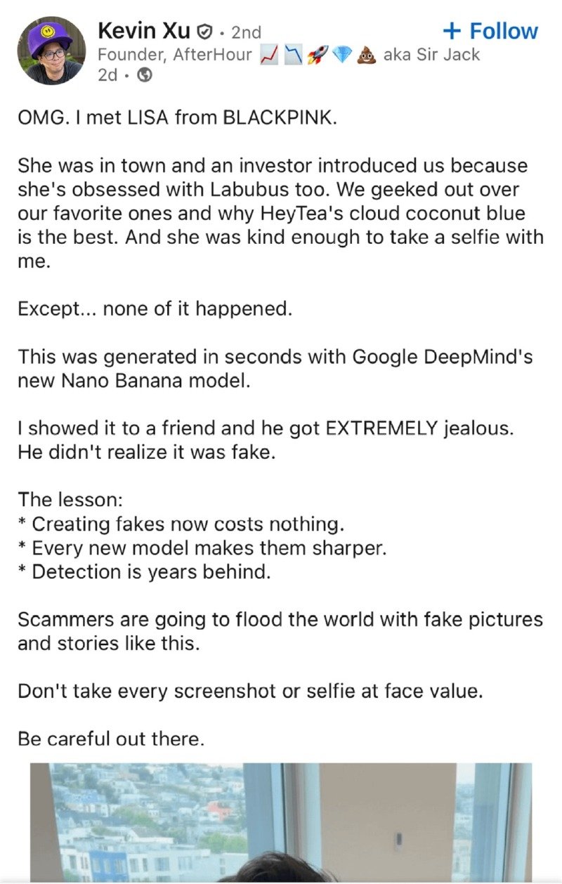 이제부터 사기꾼들은 이러한 형태로 유명인과 사진을 찍었다고 하면서